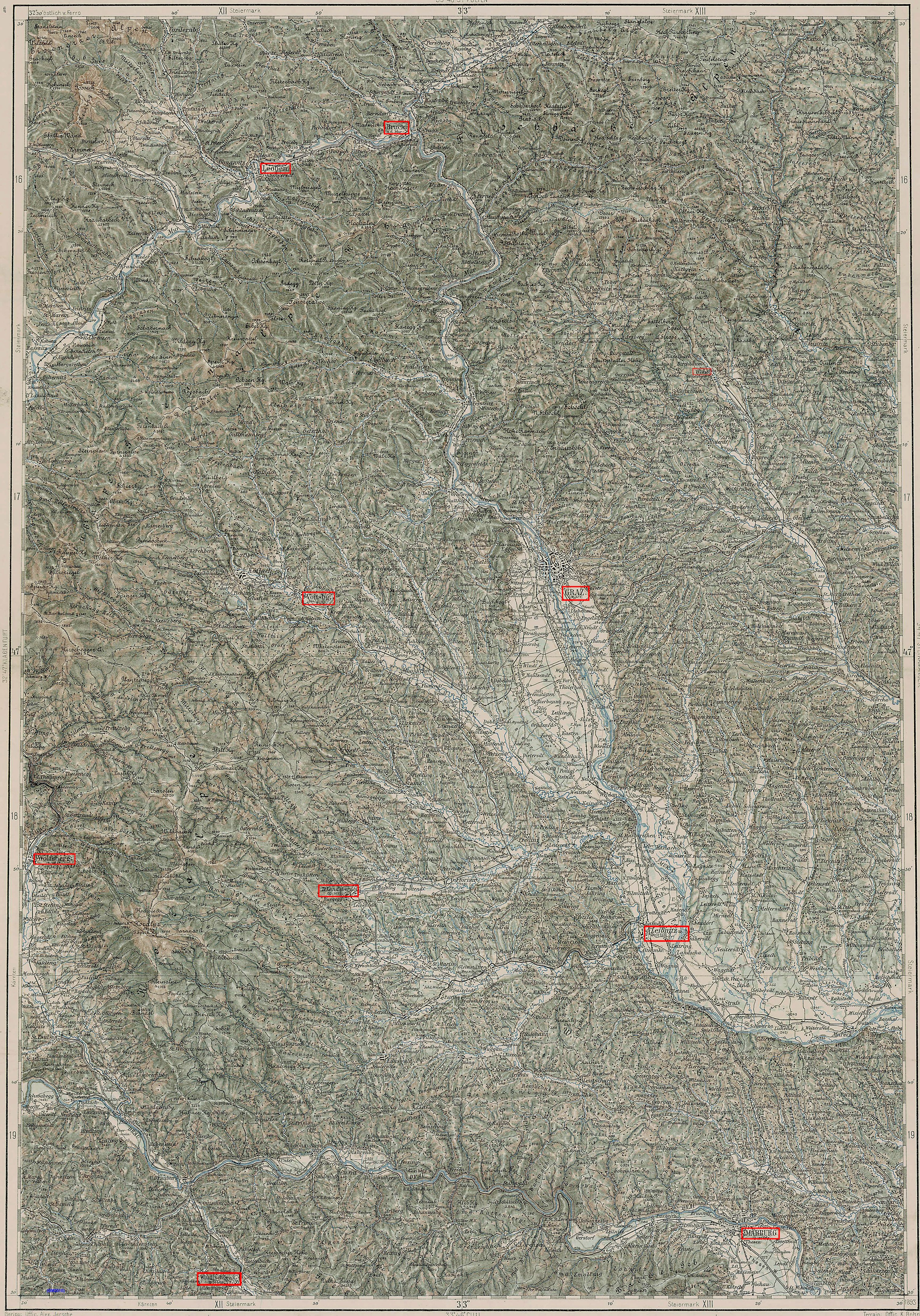 Bruck an der Mur - Deutsch-Landsberg - Graz - Graz Umgebung - Leibnitz - Leoben - Marburg - Marburg Umgebung - Voitsberg - Weiz - Windischgratz - Wolfsberg